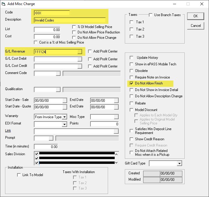 Now when web orders are processed, any models or items that don’t have a record entry in EPASS are assigned the XXX miscellaneous charge.