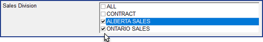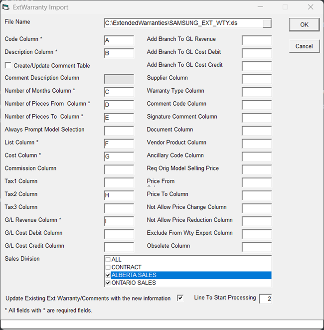 In the Sales Division area, select each division that the imported extended warranty belongs to.