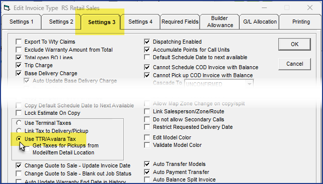 Select the Get Tax from TTR/Avalara checkbox.