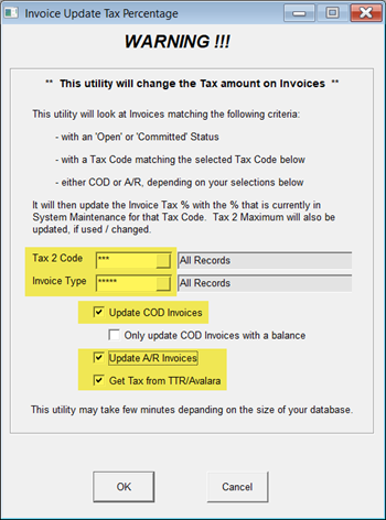 This utility updates the Tax2 total for all open invoices with a new total from AvaTax.