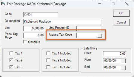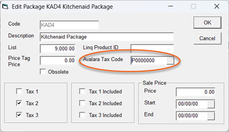 - The individual package detail lines (items within the package) are used for the tax calculation.