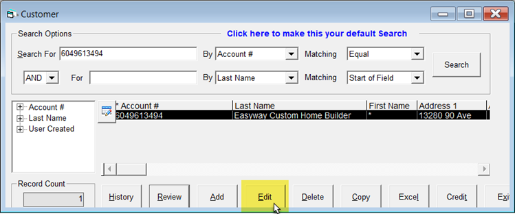 Search for the customer's record and then click Edit.