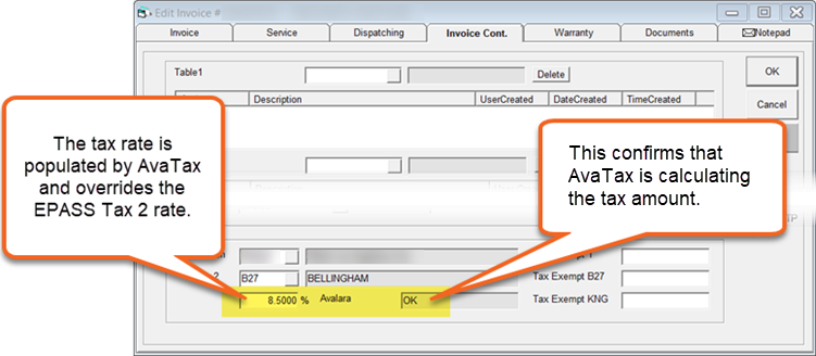 You can view the tax rate that AvaTax is using for the Invoice on the Invoice Cont. tab.
