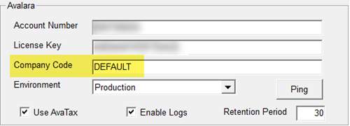 In the Company Code field, enter the name of your live company in Avalara (example,