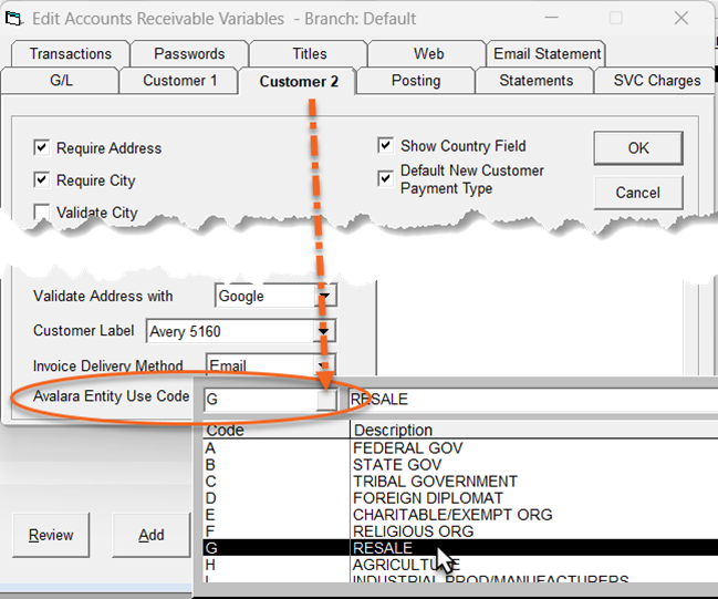 Add Avalara Entity Use Codes to Customers and AR Variables