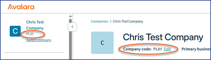 Before following the steps below, add a "PLAY" company to your Avalara account that you can use for testing. See Avalara's instructions for adding a company.