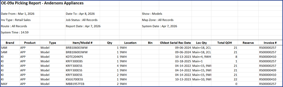 OE-09a Picking Report