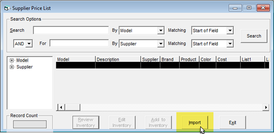To import a price list for MODELS, go to Serial Inventory > Supplier Price List.