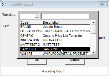 Importing a Supplier Price List